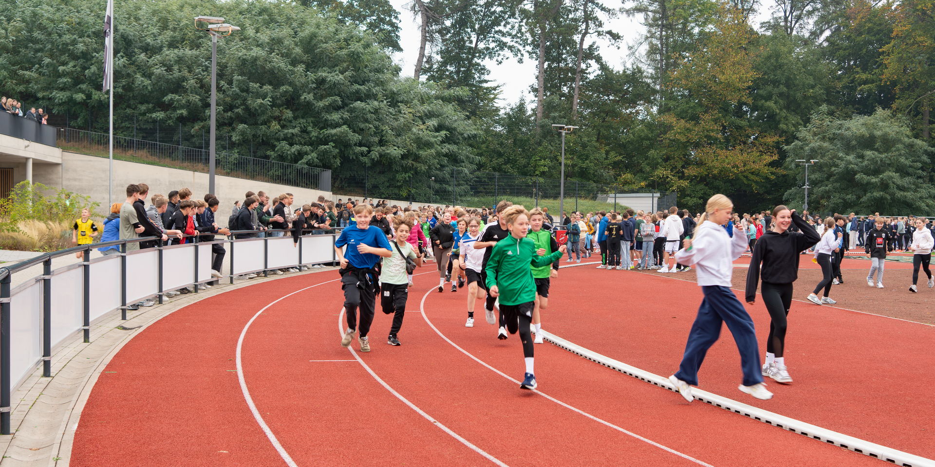 Für das leibliche Wohl sorgte die Q2, die Kuchen und Getränke verkaufte. Außerdem organisierten die Oberstufenschüler abwechslungsreiche Spiele und Aktionen für die jüngeren Jahrgänge. Auch viele Lehrkräfte beteiligten sich aktiv: Einige begleiteten die Laufenden auf der Strecke, andere unterstützten als Streckenposten oder feuerten die Schülerinnen und Schüler an.